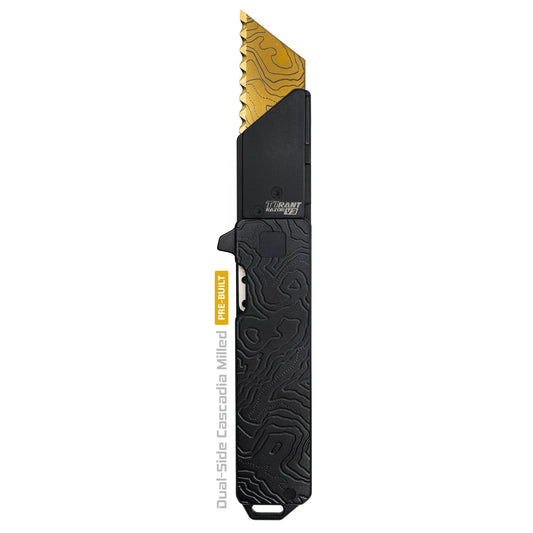 Exceed Designs TiRant RAZOR V3 Utility Knife, (Jet-Black 6AL-4V Titanium) Dual-SIde Milled CASCADIA TOPO Edition