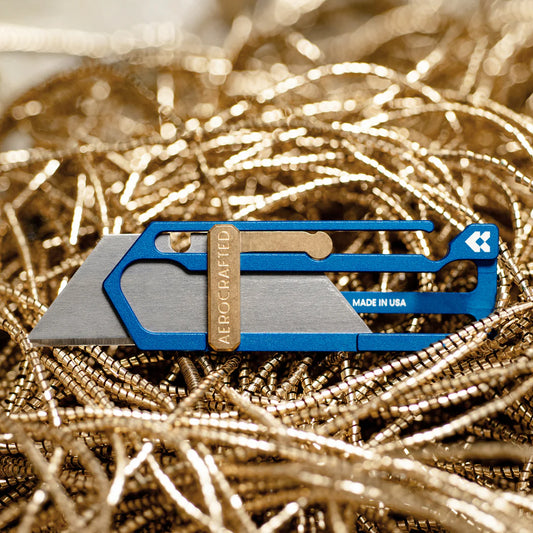 Aerocrafted Sideslip Utility Knife Electric Blue Aluminum/Bronze, Right-handed