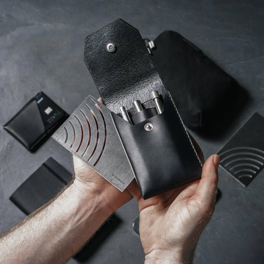Wingback Leather Pen/Pencil Sleeve, Charcoal