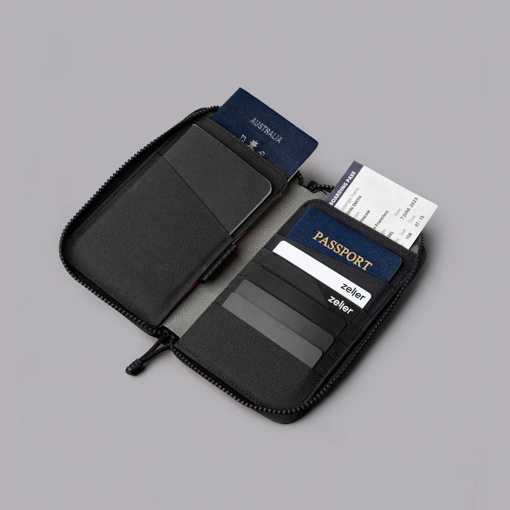 Praktisk og sikker Zip Passport Wallet – en reisepung som organiserer pass, kort, boarding‑pass og småting i et kompakt format med værbestandig materiale og RFID‑beskyttelse. Perfekt for reiser og hverdagsbruk.