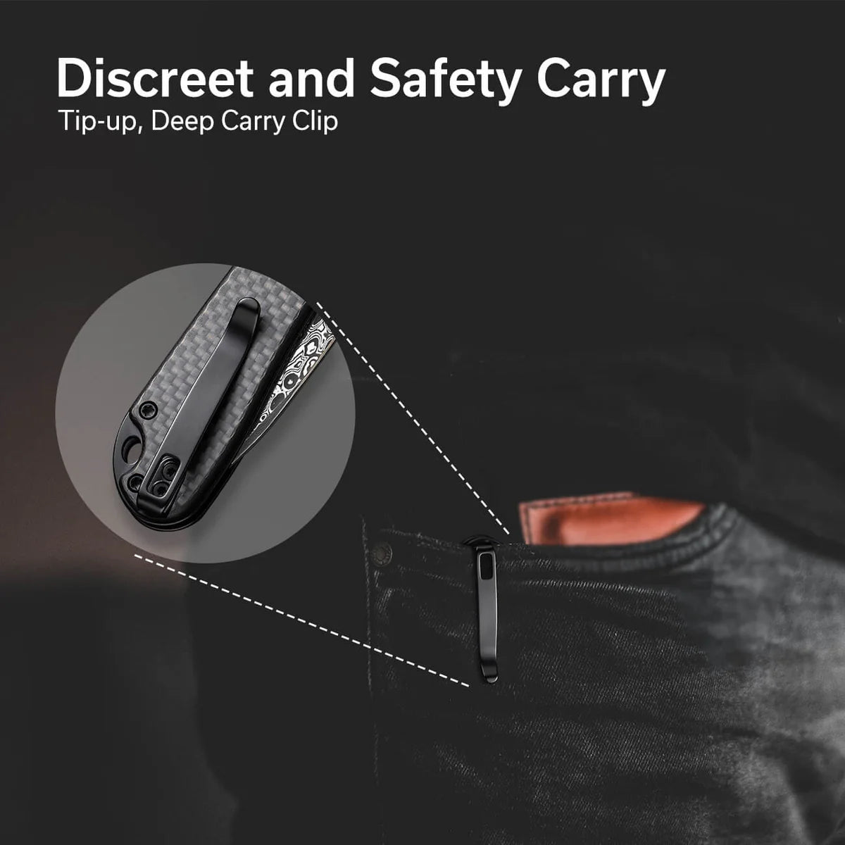 - Lommeklips: Tip-Up, høyrehåndsbæring