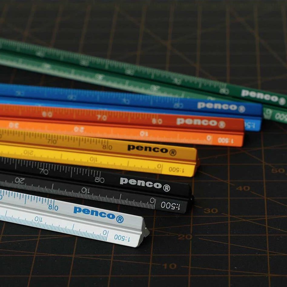 Hightide Penco Reduksjonslinjal gjør det enkelt å tegne i ulike skalaer. Kommer i stilige farger og kontraster. Laget av slitesterkt anodisert aluminium i trekantet form. Inkluderer 6 skalaer: 1:100 / 1:200 / 1:300 / 1:400 / 1:500 / 1:600.