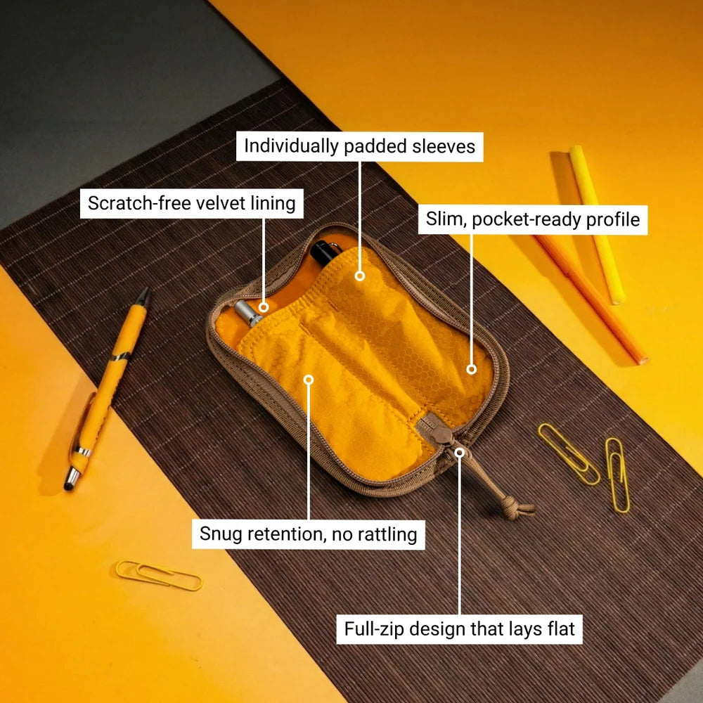 Lochby Duo er et kompakt og stilfullt pennetui som beskytter opptil to penner med myk innervattering og robust ytterside for daglig bruk.