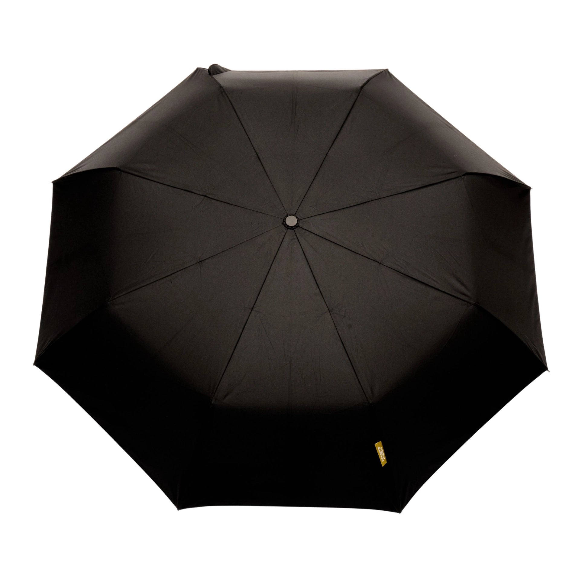 Sort, kompakt paraply med automatisk åpne- og lukke-funksjon, laget i robuste og miljøvennlige materialer for daglig værbeskyttelse.