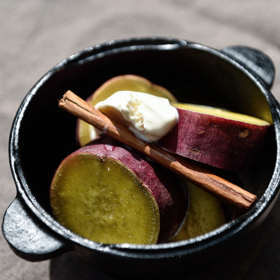 En kompakt støpejernsgryte fra Snow Peak, perfekt for småretter over bål eller i ovn.