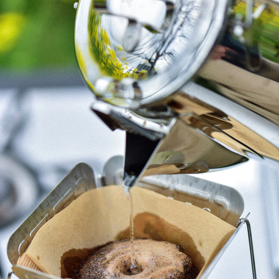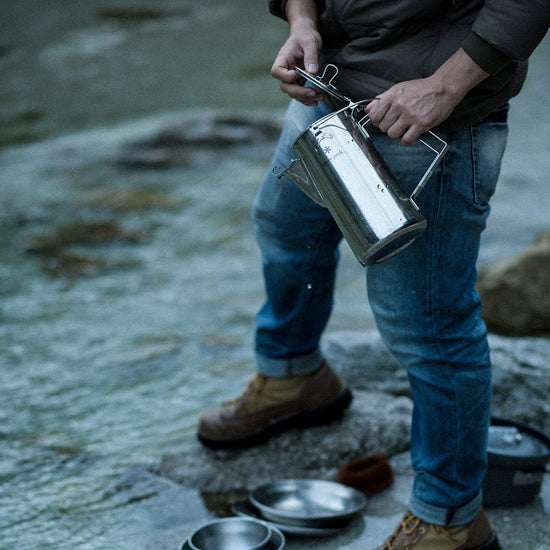 Classic Kettle 1.8 er Snow Peaks nyeste campingkjele, laget i slitesterkt japansk rustfritt stål med solid håndtak, låsbar tut og opphengsloop for enkel bruk. Rommer 1,8 liter – perfekt for større porsjoner kaffe.