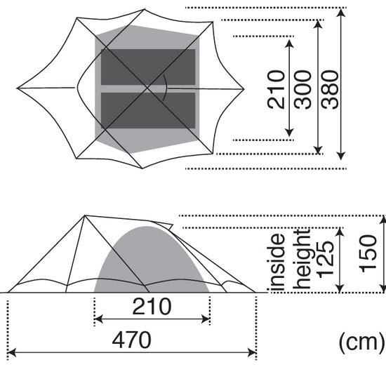 - Materialer: Fly sheet – 75D polyester taffeta med PU-coating (min. 3000 mm), Teflon vannavstøtende, UV-beskyttelse; Inner room – 68D polyester taffeta; Bunn – 210D polyester oxford med PU-coating (min. 1800 mm); Stenger – A7001 aluminium (⌀12,5 mm)